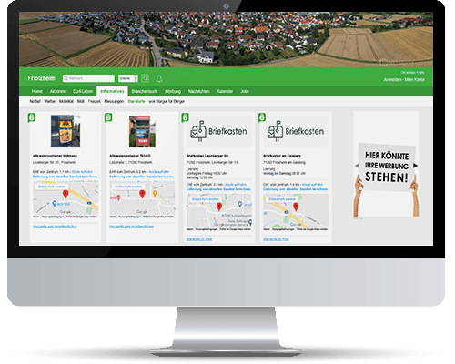Sie erhalten einen gesamten Überblick über das Wetter aus dem Dorf, ortsbezogene Müllentsorgung inkl. Müllterminen, alles rund um Ihre Mobilität mit Fahrplänen des ÖPNV oder Benzinpreislisten sowie genaue Angaben zu Briefkästen-Standorten.
